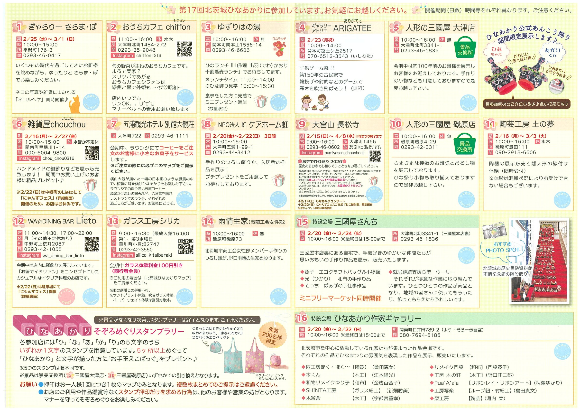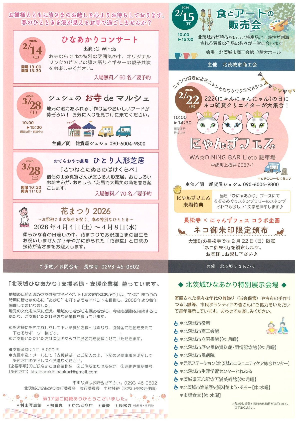 北茨城市では、令和8年2月15日(日)から3月3日(火)の期間で「第17回北茨城ひなあかり」が開催されます。
