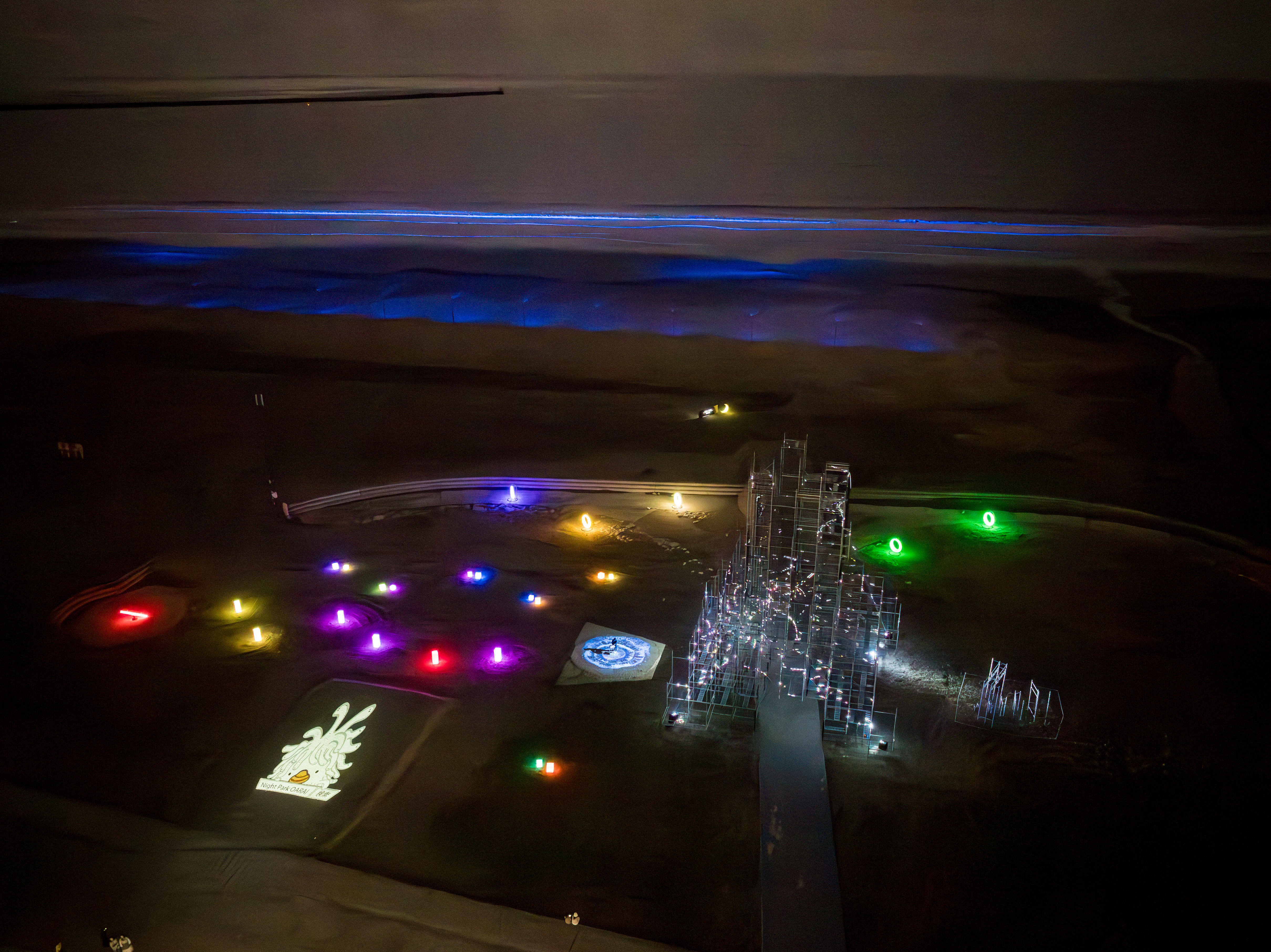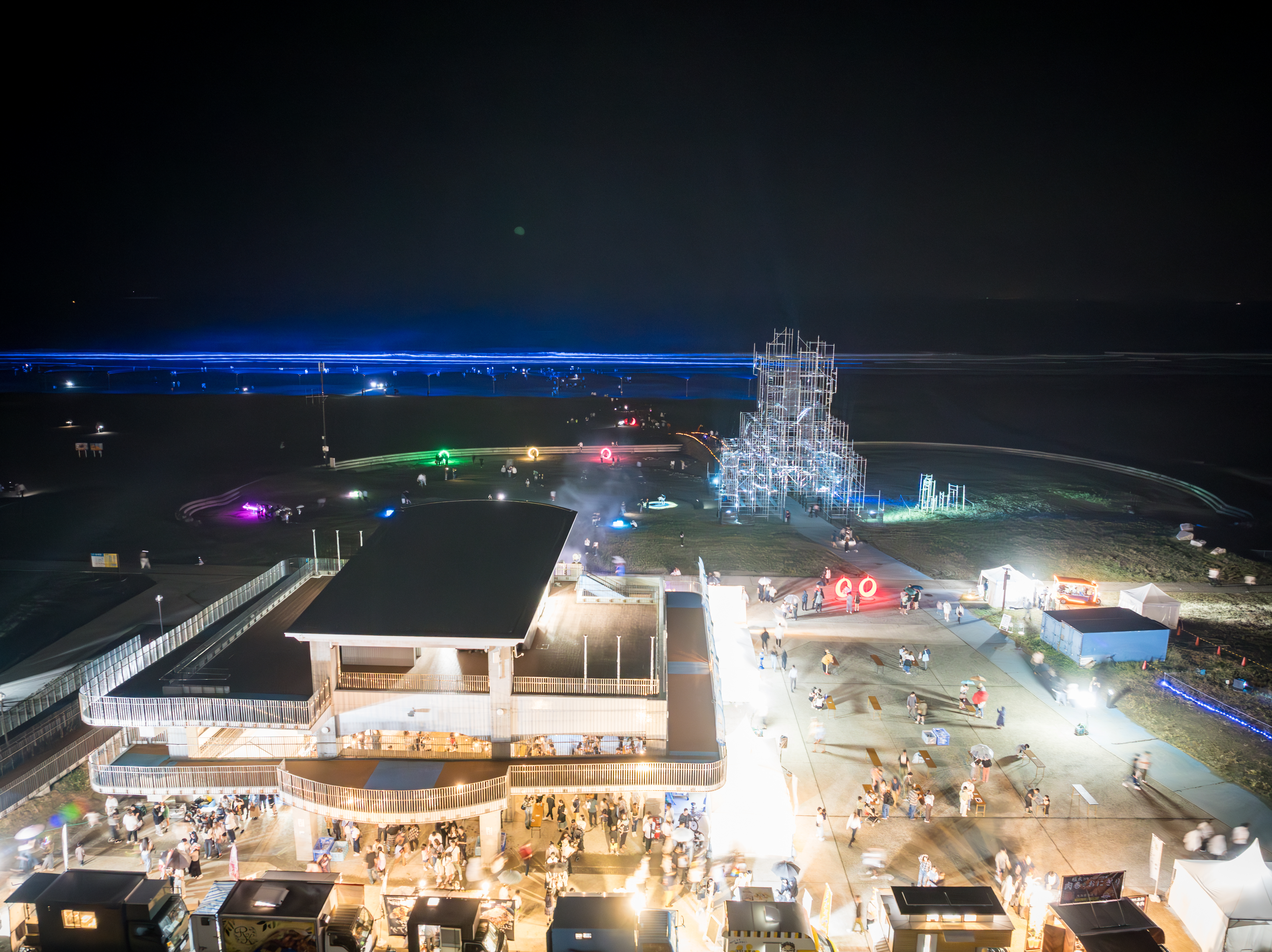白波を青く染める「NIGHT WAVE」、足場を使った巨大な光の城「RADIANT GRID」砂浜をキャンバスにした「Luminous Sand」など、