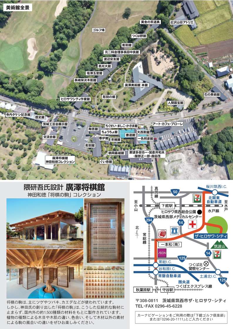 (入館チケットにて本館、黄金の茶道具、つくは野館、人間国宝館、庭、芸術の森分館、交流会館、茨城工芸会展示館、石の美術館、歴史館もこ覧いただけます。)
