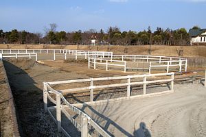ポニー広場ではポニーの乗馬体験が出来る馬場が広がります。馬場の種類も大小2種あります。