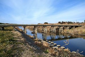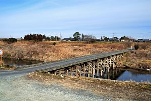 八幡橋よりもさらに年代ものの木製橋です。橋脚は10こほどあり、支柱も細く華奢。趣や雰囲気は深いです。傍らには小船もつけてあります。川の流れは緩やかで、普段はしっくりと落ち着いた雰囲気の橋です。日立方面を望むと遠景に山々が見えます。 2t車までが通行可能です。 所在地 常陸太田市落合町 交通アクセス 支援実績 カテゴリ 古い建物 自然風景 交通 ~に見える場所 大きな地図を表示 一覧に戻る