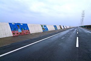 町民参加の町づくり事業の一環で、90年からスタートした企画です。海岸通りにある護岸壁に一般公募した絵などを壁画として描いており、現在も進行中です。 ストレートな奥行きのある道路で、快晴時には海が間近に見え、陸地面には風力発電用の風車がみえます。プロモーションビデオなどにも最適です。 所在地 神栖市南海浜道路 交通アクセス 支援実績 カテゴリ 自然風景 町並み・風景 大きな地図を表示 一覧に戻る