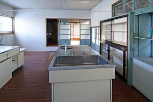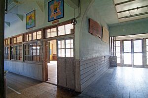 昭和40年に完成した木造平屋建の校舎です。当時の面影を残す古い建物です。校庭には市民定の保存樹である藤があります。校舎と併設する形で調理実習室や実験室が別棟にあります。 廊下や教室は床板でサッシも木製で、非常に趣があります。 正面玄関へいたる廊下は高台で南向きのため、日中はかなり明るいです。 所在地 石岡市柴内630 交通アクセス 支援実績 カテゴリ 古い建物 学校・病院・警察・消防 ~に見える場所 大きな地図を表示 一覧に戻る