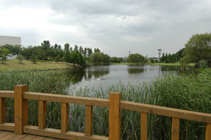 公園内には水と緑豊かなスペースがあります。