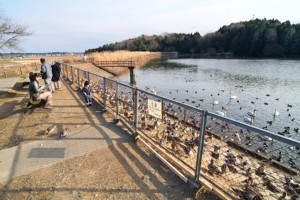 終日沼にいるのはマガモやカルガモ、オナガガモといったカモ類が多いです。