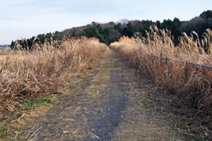 沼脇の側道は両側を芦原が、円形に森林を望め、人工物の少ない場所です。フェンスを隠せば時代劇にも使用できます。