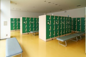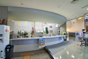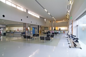 水泳や体育館使用に必要な受付をするエントランスは、広々とした明るい空間で病院のような雰囲気もあります。