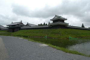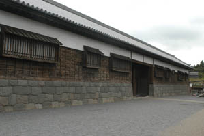 江戸城大手門は、徳川家康が江戸に築いた城の外観をイメージしています。奥に櫓門、正面中央に大手門を配し、堅固な築地塀が延々と南北の櫓につながります。当時はまだ、外周に石垣の構築はなく土塁でした。大手門は弘前城の門を、櫓は彦根城・天秤櫓、熊本城・宇土櫓を参考にしています。実物の約70%のスケールで建造。門の前の広々とした空間は、合戦シーンや大名行列にも使用されています。NHK大河ドラマ「利家とまつ」では馬に乗り、門から出て来るシーンを撮影しました。