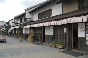 町家街は、江戸時代初期の頃の商いを営む江戸町人の家並みを表現。瓦屋根は少なく、板葺きや杉皮葺きの屋根が多く見られました。このたたずまいには、安土桃山時代の「楽市楽座」の面影も残ります。上下に開く板戸がそのまま商品陳列棚になる「バッタリ」と呼ばれる建具もその特徴の一つです。町なかの様子の撮影によく使用されます。