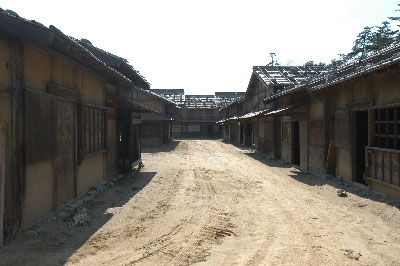 江戸時代の堺の町のイメージで、NHK大河ドラマ「利家とまつ」の撮影用につくられたオープンセット。NHK大河ドラマ「武蔵」では、戦国時代の京の町の設定で撮影が行われました。NHK金曜時代劇「ゆうれい貸します」で、花火を上げたのもこのオープンセットです。