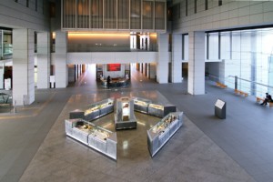 3階部分の渡り廊下は手すりがシースルーになっており、医学系ドラマで撮影実績があります。ここから2階エントランスロビーの撮影も可能です。