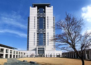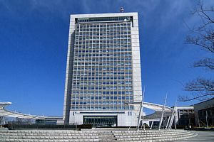 1998年竣工。林木育種センターの跡地に建設された県庁舎は、既存の樹木も活用しながら敷地全体に植栽をほどこした緑豊かな公園の中の庁舎です。鉄筋コンクリート造、地上25階、地下2階建て。地上116m、屋上階は展望フロアになっており、約15haの敷地の中で一番高く聳える行政棟です。エントランス、ロビー、階段など撮影に適した場所が数多く、シアターや広報コーナーなどのある2階エントランスは病院や研究機関など多目的に利用できる雰囲気です。休日のみ撮影可能、エントランス中央の物産ブースは移動可能です。