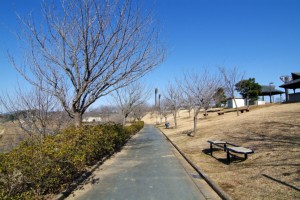 公園内の遊歩道にはインターロッキングが張られ、適度に植栽がされています。公園西側にあるヘルスロードと呼ばれる散歩道は、春には道の両脇に桜並木が現れ、下手には初夏にコスモス畑が現れます。