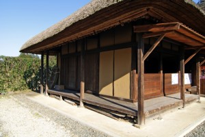 旧玉里村の上玉里・小松家から寄贈され、1994年に現在の場所に移築された古民家です。創建の時代は1700年代(江戸中期)とされています。地域の特色を現す曲がり屋の造りで、もともとは庄屋格の人物の家とされています。中には厩もあります。周囲は簡単な庭園が造られており、背景のヌケも良いので、時代劇にも対応できます。
