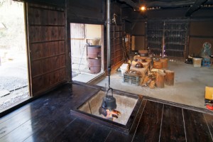 客間・居間用の囲炉裏場は柿渋で仕上げられた床や壁材が美しいです。
