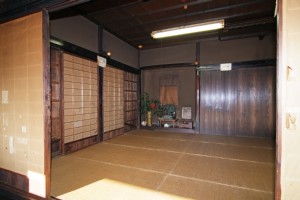 南面の建具は半分下が板で仕切られた珍しい造りで、蔀戸と呼ばれているものです。