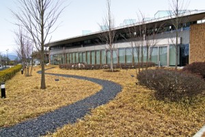 2004年に開館したばかりの新しい施設です。1階の屋根に緑化スペースがあるなど、斬新なアーバンデザインが組み込まれています。幹線道路に面する南側敷地には芝生の広場があります。平地ながらヌケのよい施設です。