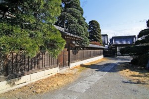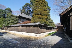母屋をぐるりと取り囲む木塀は細かな格子の意匠で、趣があります。相当な樹齢を感じさせる庭木の様子も見事です。