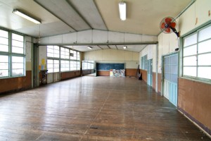 ダンスフロアなどにも利用されているフロアには、黒板のある正面に大きな鏡が配されています。