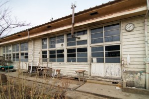 岩間第一小学校の旧分校校舎です。昭和初期の作風を感じる木造平屋建です。校舎南面には運動場があり、敷地内には桜が多いです。古びた建物は実に趣があります。