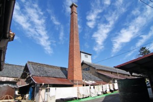 酒蔵の象徴的存在でもあるレンガ造りの煙突は、大空を背景に聳える姿に雄々しさがあります。