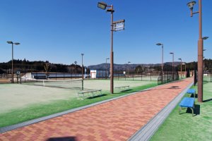 テニスコートは、人工芝に砂を入れたクレーコートです。6面あり、フェンスで仕切られて3面ずつ縦に並んでいます。