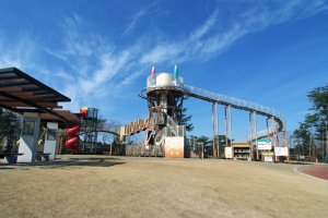 あそびの杜は、83mと73mのローラー滑り台「天空の砦」、大型木製遊具「雲の回廊」などがある、丘の上遊具広場です。