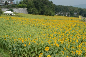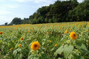 約2.7haの畑一面に、ひまわりが咲きます。8月初旬から下旬までが開花時期で、日本の八重ひまわりをはじめオランダ・ドイツ・イギリス・イタリアなど世界のひまわりが咲き競います。ひまわり畑の背景に、電柱・電線等の入らない場所があります。フジテレビドラマ「フジ 子ヘミングの軌跡」のロケが行われました。