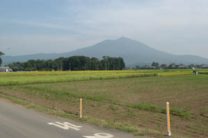 ひまわり畑から見る筑波山の山並。のどかな田園風景が広がる一帯に、ひまわり畑はあります。