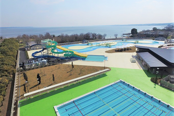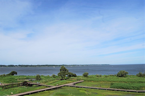 霞ヶ浦に面した総合公園。シンボルのオランダ型風車の回りでは、春は約3万本のチューリップが咲き乱れ、冬はイルミネーションで彩られます。