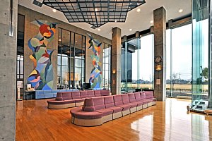 鉄筋コンクリート造・屋根が鉄骨造の体育館。バリアフリー構造で2002年に竣工。正面エントランスを入ると、ラウンジからトレーニング室にかけて、天井まで続くガラス張りとなっており特徴的。各種運動設備が充実。 所在地 筑西市上平塚 交通アクセス 支援実績 カテゴリ スポーツ&レジャー施設 大きな地図を表示 一覧に戻る