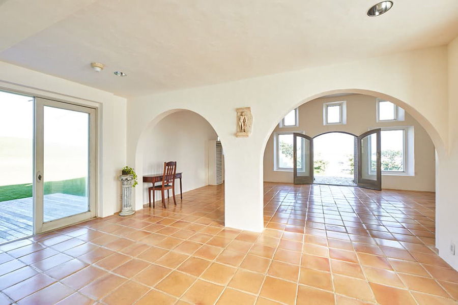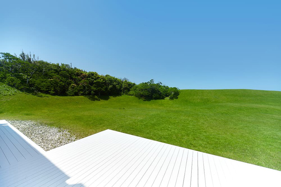 目の前に広がる紺碧の海と広い空。青々とした芝生ガーデン。2000坪の敷地を誇るスタジオ イオスは海までわずか100メートル。