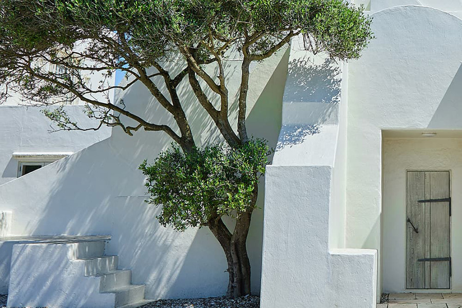 エーゲ海ミコノス島の観光名所「パラポルティアニ教会」の一面を実寸どおり再現。