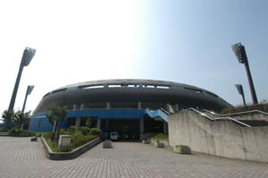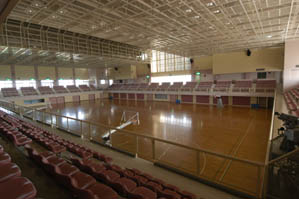 平成9年に竣工した地下1階、地上4階建ての大規模なスポーツ施設。2階のメインアリーナは2,390平方メートル、地下1階にサブアリーナがあります。1階は武道場、弓道場になっています。日テレ24時間テレビで、日本対ロシアのバレーボール試合の収録が行われました。