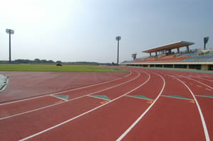 平成9年に竣工した第2種公認陸上競技場は、トラック、フィールド、インフィールド、スタンド、夜間照明、放送設備を完備。インフィールドの天然芝グラウンドは日本サッカー協会規格に対応し、サッカーやラグビーの試合に使用されています。トラックでは、モーニング娘主演の駅伝映画「ピンチランナー」のスタートとゴールシーンの撮影が行われました。また、「水曜日のダウンタウン」、「ロンドンハーツ」の収録で利用されております。