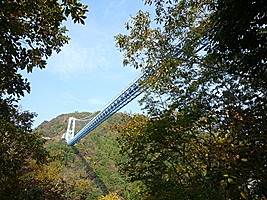 日本最大規模の歩行者用吊橋。長さ375m