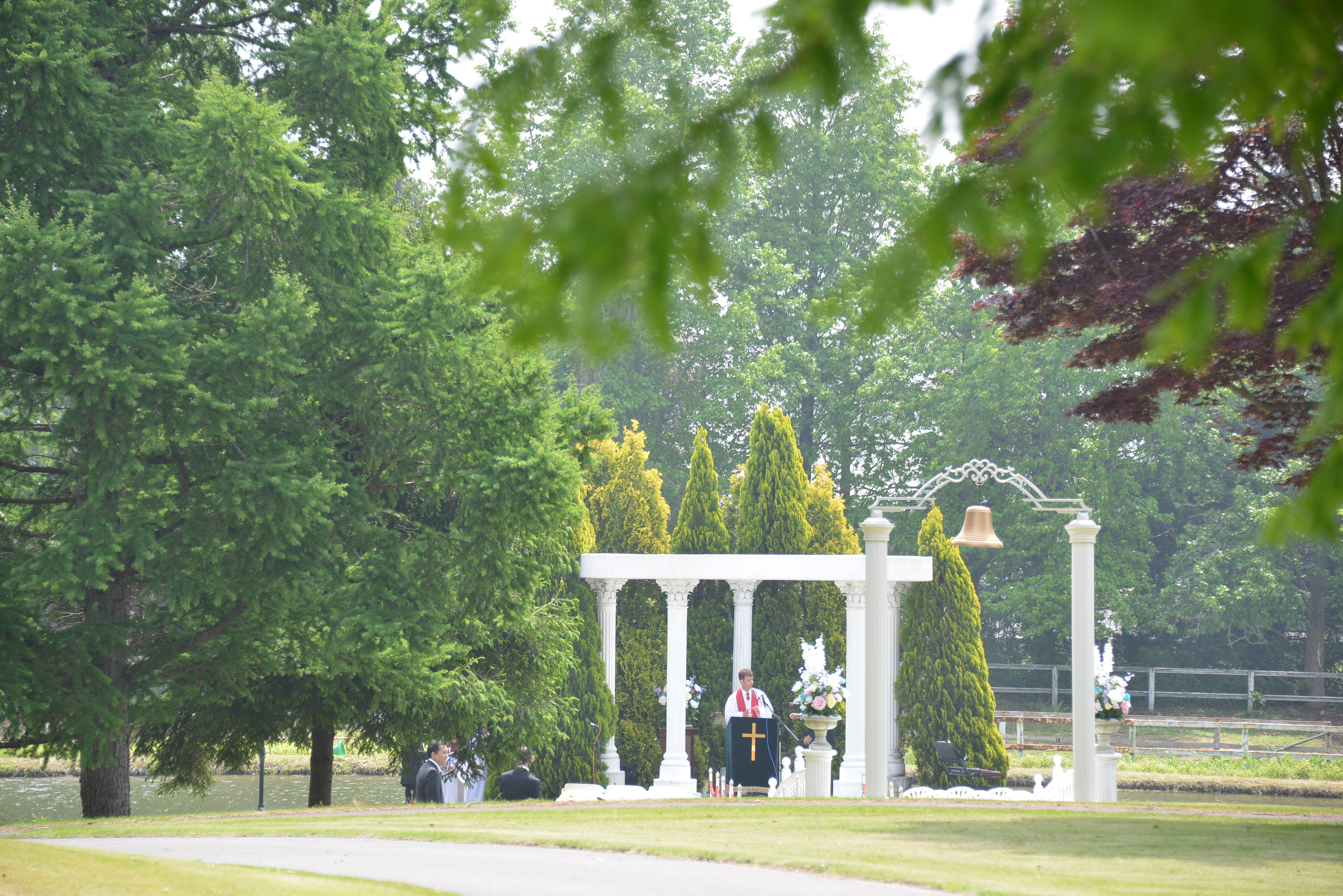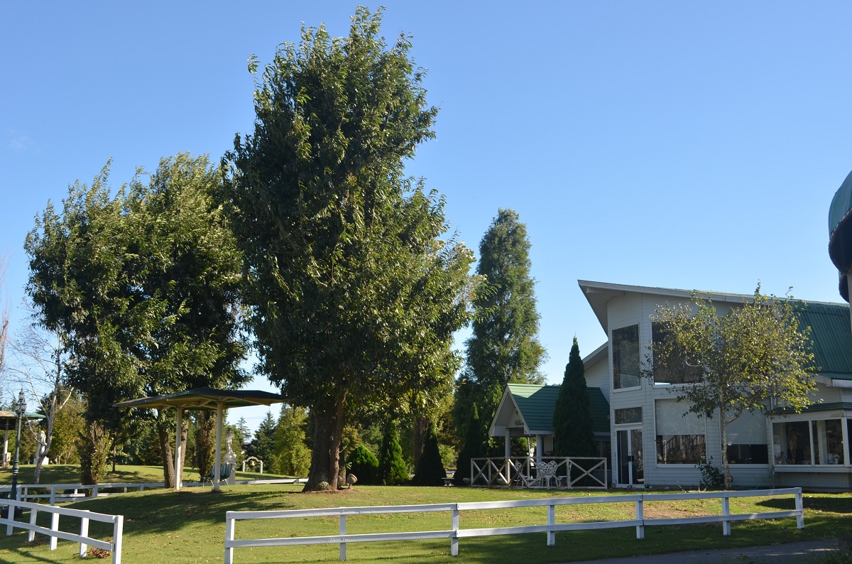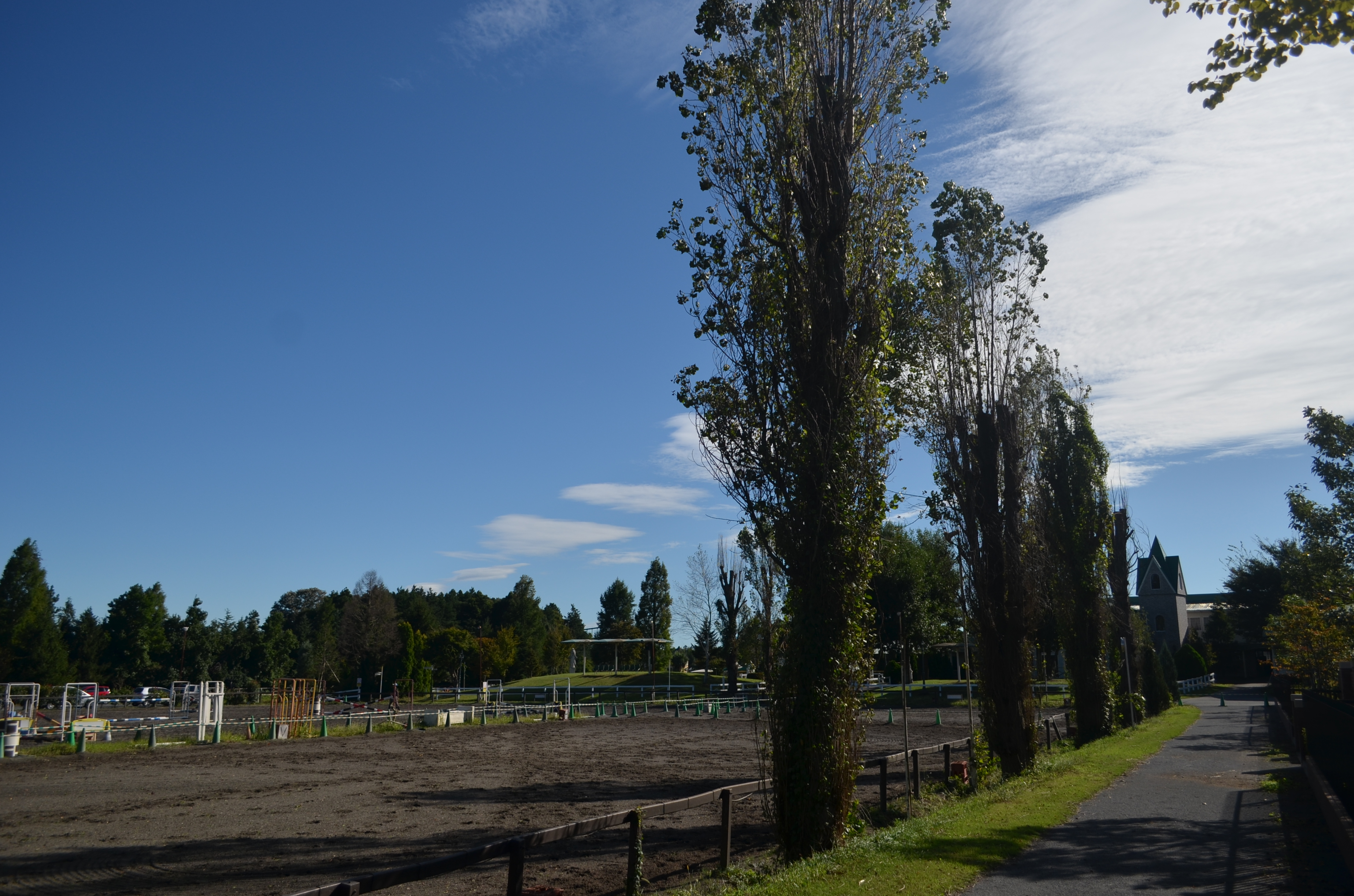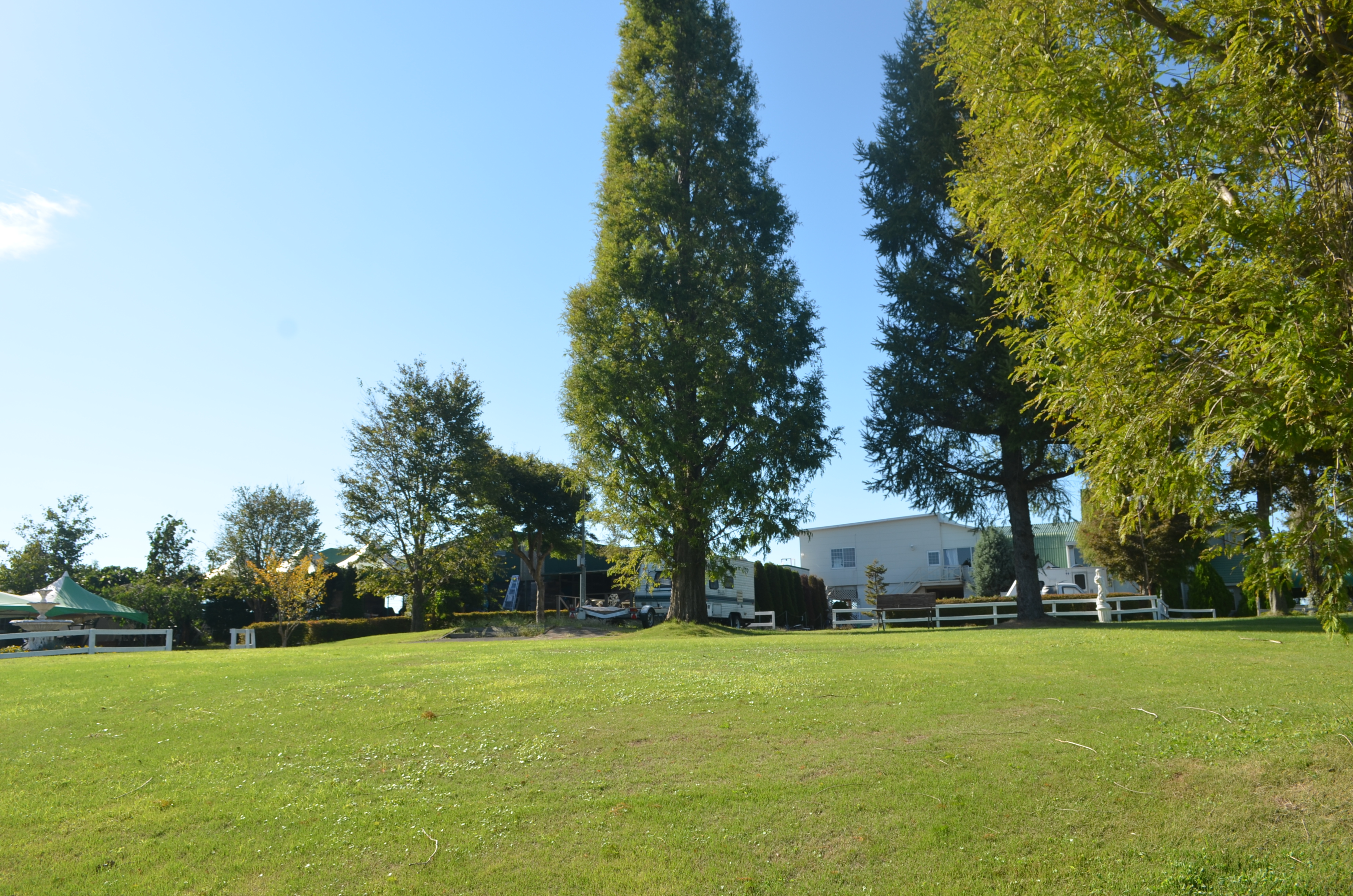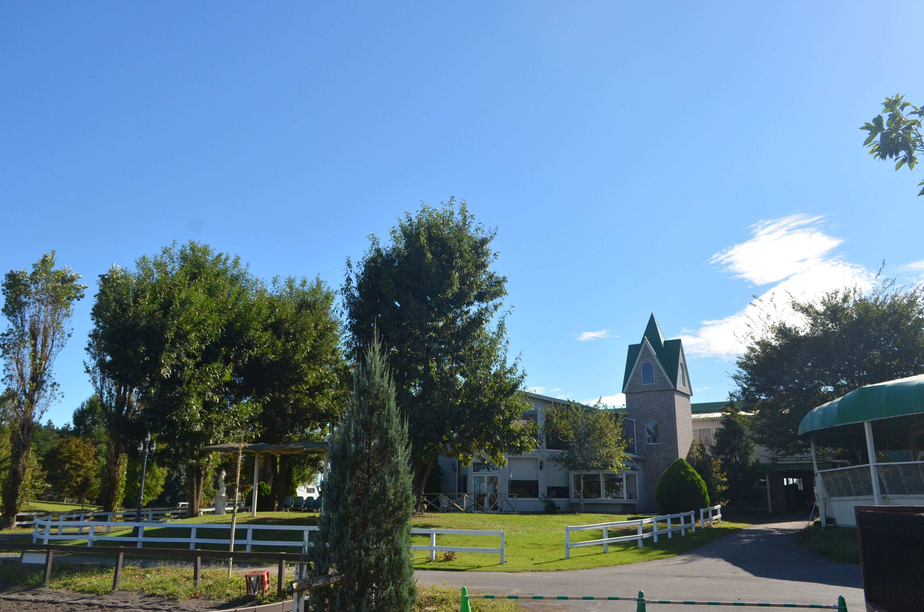 ブリティッシュガーデンを思わせるような広大な敷地に英国風の建物と、のんびりと馬が放牧され、園内には池もあります。