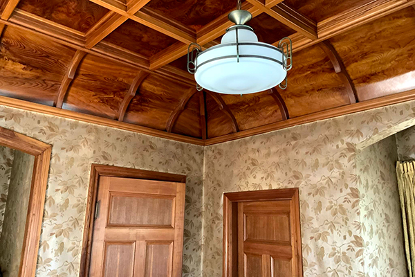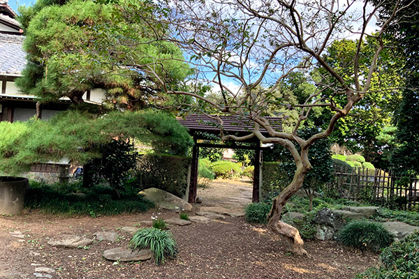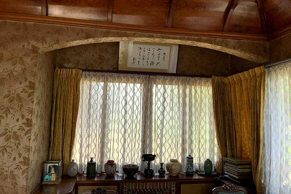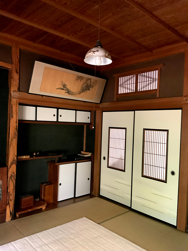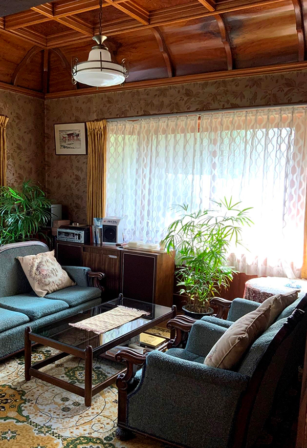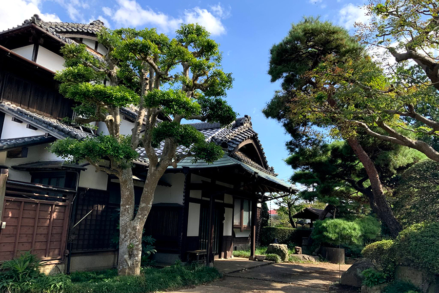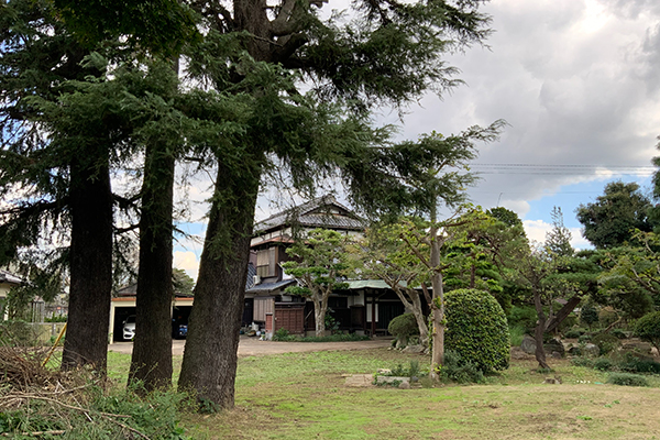 戦前に別荘として鬼怒川沿いに建てられた家です。門から車寄せまで距離があるので、道路に見立てることができます。玄関と洋室の応接間は格天井で、二間続きの和室は書院造りです。庭は広く、10台以上の駐車が可能です。