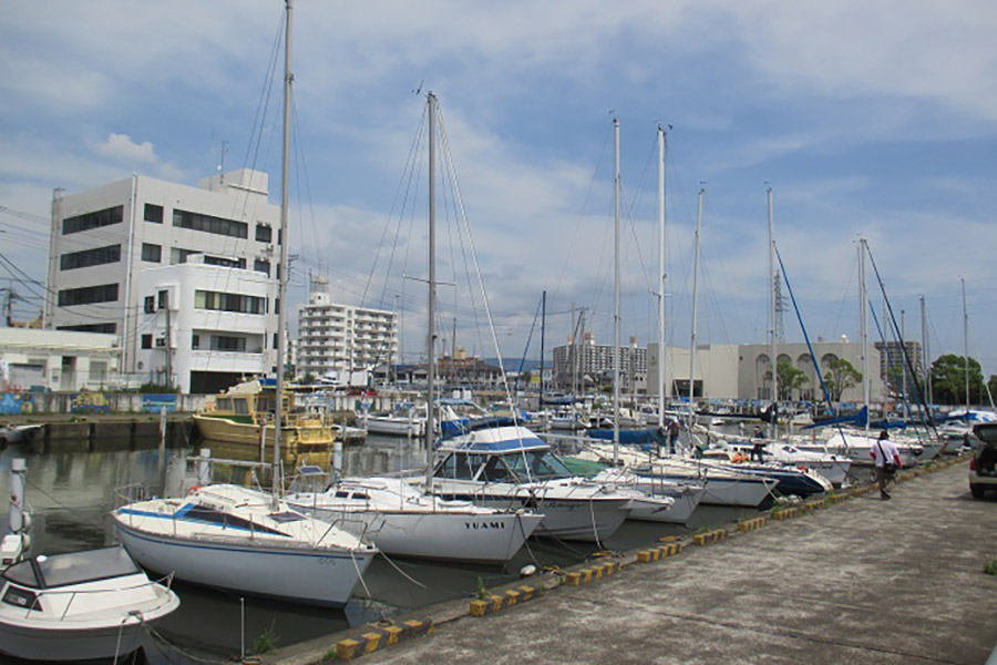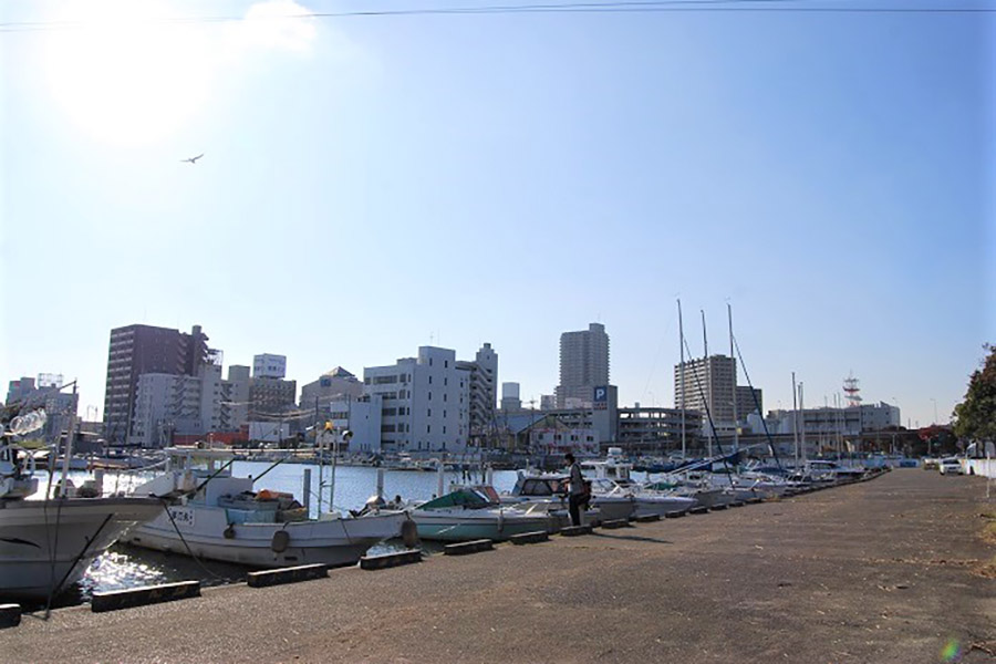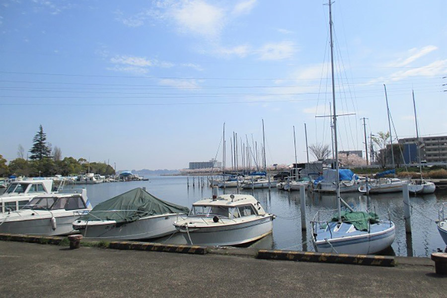 霞ヶ浦の玄関口。遊覧船やヨットなどが停泊している。