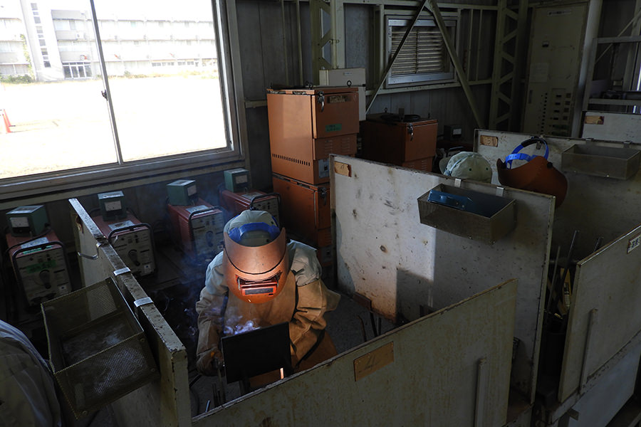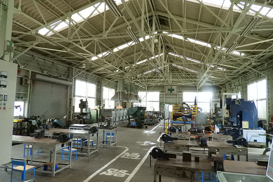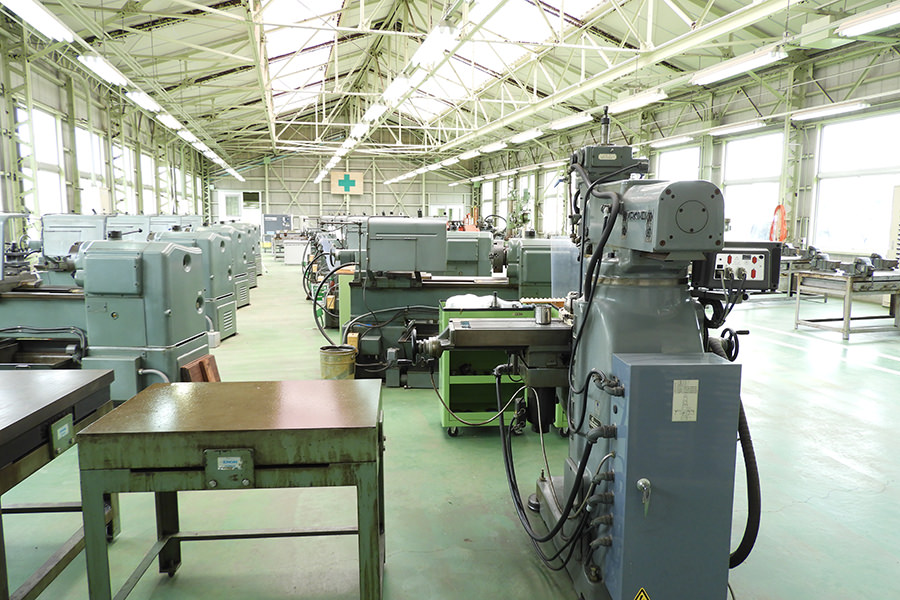 実習場内は主に機械工作機や溶接、電気工事関係のものがあり、昭和から近代までの工場の雰囲気が味わえる。