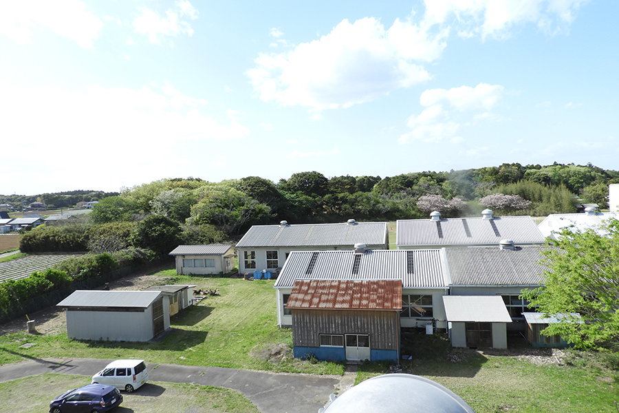 鹿行地区の自然に恵まれた環境。大通りに面していないので車の騒音も少なく、敷地内は開放感のある広い空間。