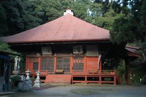 鮮やかな朱色の本堂は元禄9年(1696)に再建され、創建当時は瓦葺きでしたが現在は鉄板葺き(県指定文化財)です。本堂の周辺で、映画「HAZAN」の撮影が行われました。