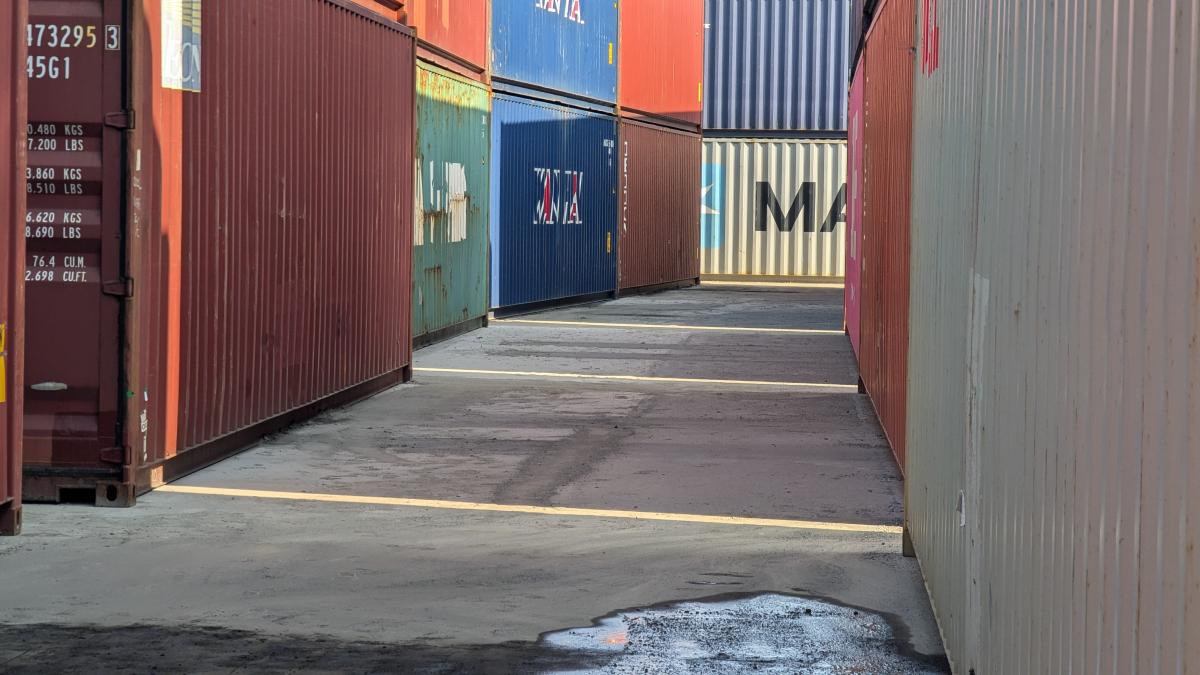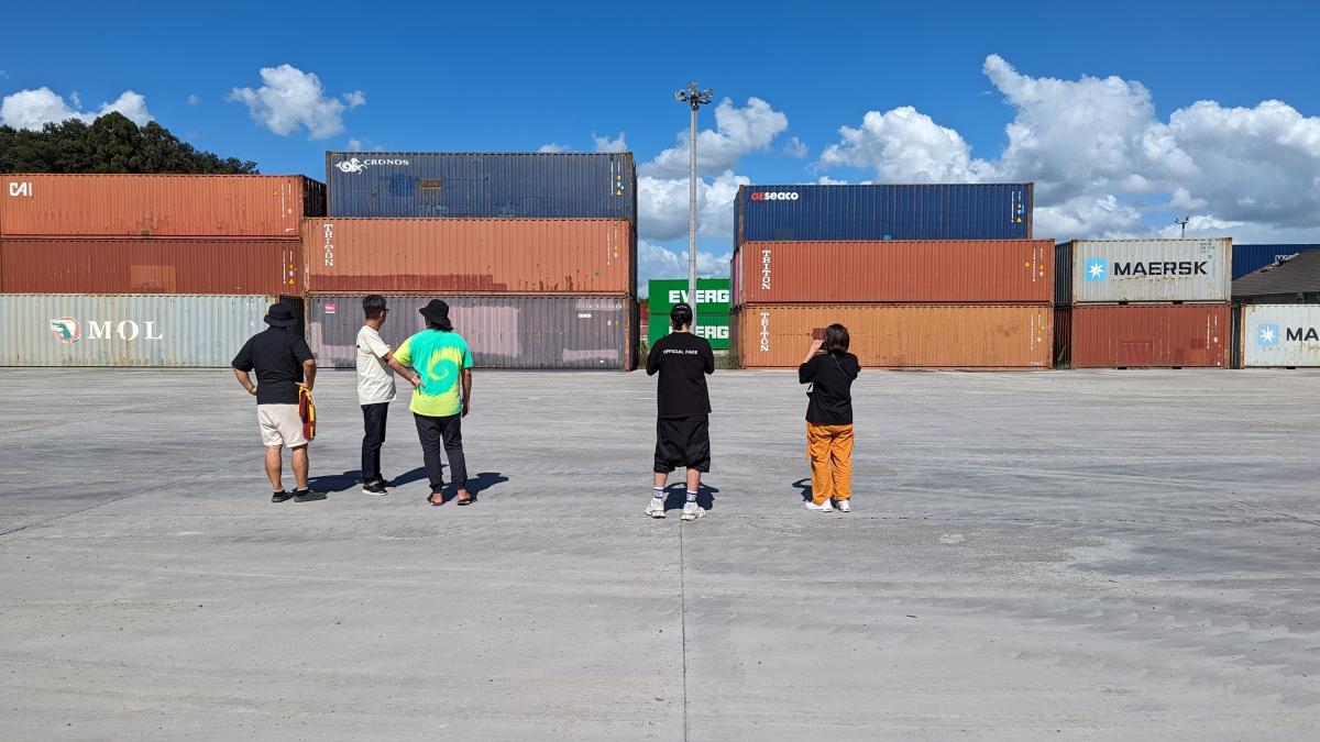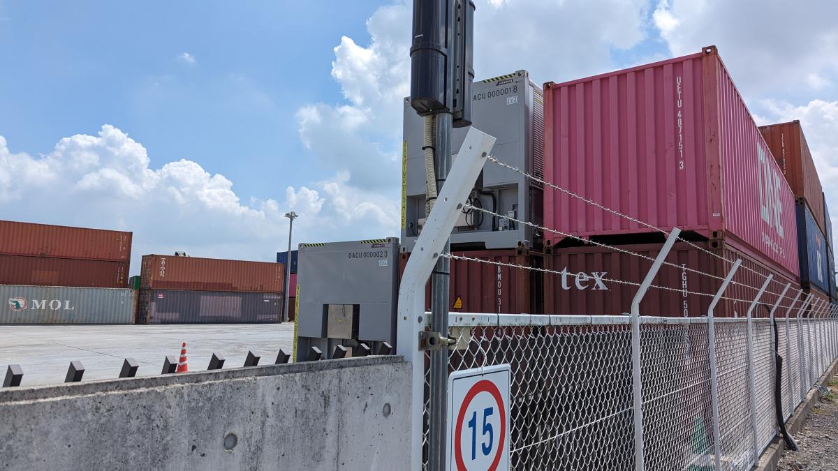 コンテナヤードの撮影も可能。コンテナの移動・組む換えも可。