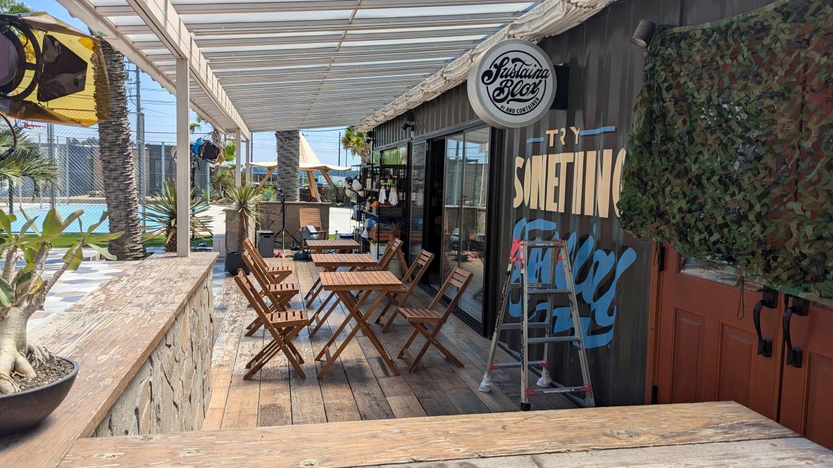 コンテナターミナルの一部に併設したアメリカ西海岸エリアにあるテラスとコンテナカフェ。