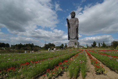 高さ120m、世界最大の青銅製大仏。霞ヶ関ビルに匹敵する高さがあり、ギネスブックに登録されています。高さ85mの最上階からは、大仏の足元にある2万平方メートルの花畑を見渡すことができ、テレビ東京「あっぱれ!日本一」で、大仏に手編みのマフラーをかける収録が行われたこともあります。 門を入るとすぐに蓮池があり、緑あふれる園内には、牡丹・あやめ園や、日本庭園も設けられています。 所在地 牛久市久野町 交通アクセス 支援実績 カテゴリ 古い建物 町並み・風景 大きな地図を表示 一覧に戻る