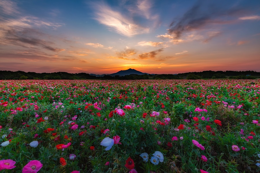 朝焼け ポピー畑