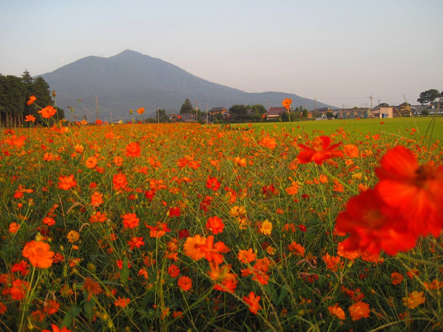 筑波山とキバナコスモス