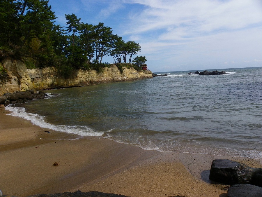砂浜から見る五浦六角堂