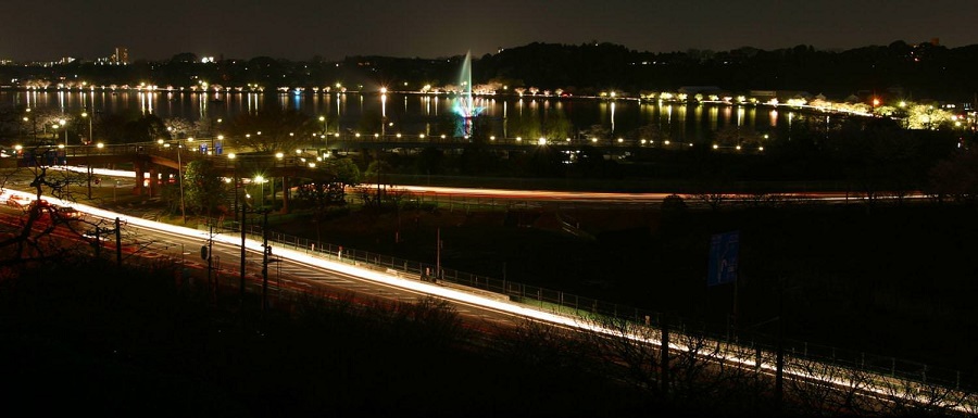 千波湖~桜まつり夜景色