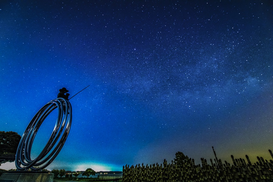 天の川で釣りをする少年